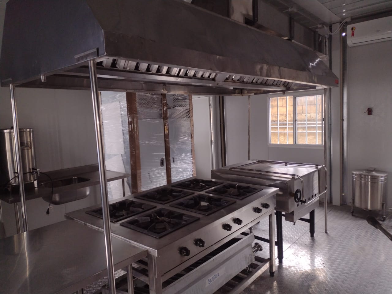 Containers oferecem uma solução compacta para a instalação de uma cozinha industrial completa. Isso é ideal para áreas urbanas ou locais com espaço limitado, onde a construção de uma estrutura convencional poderia ser difícil ou inviável.